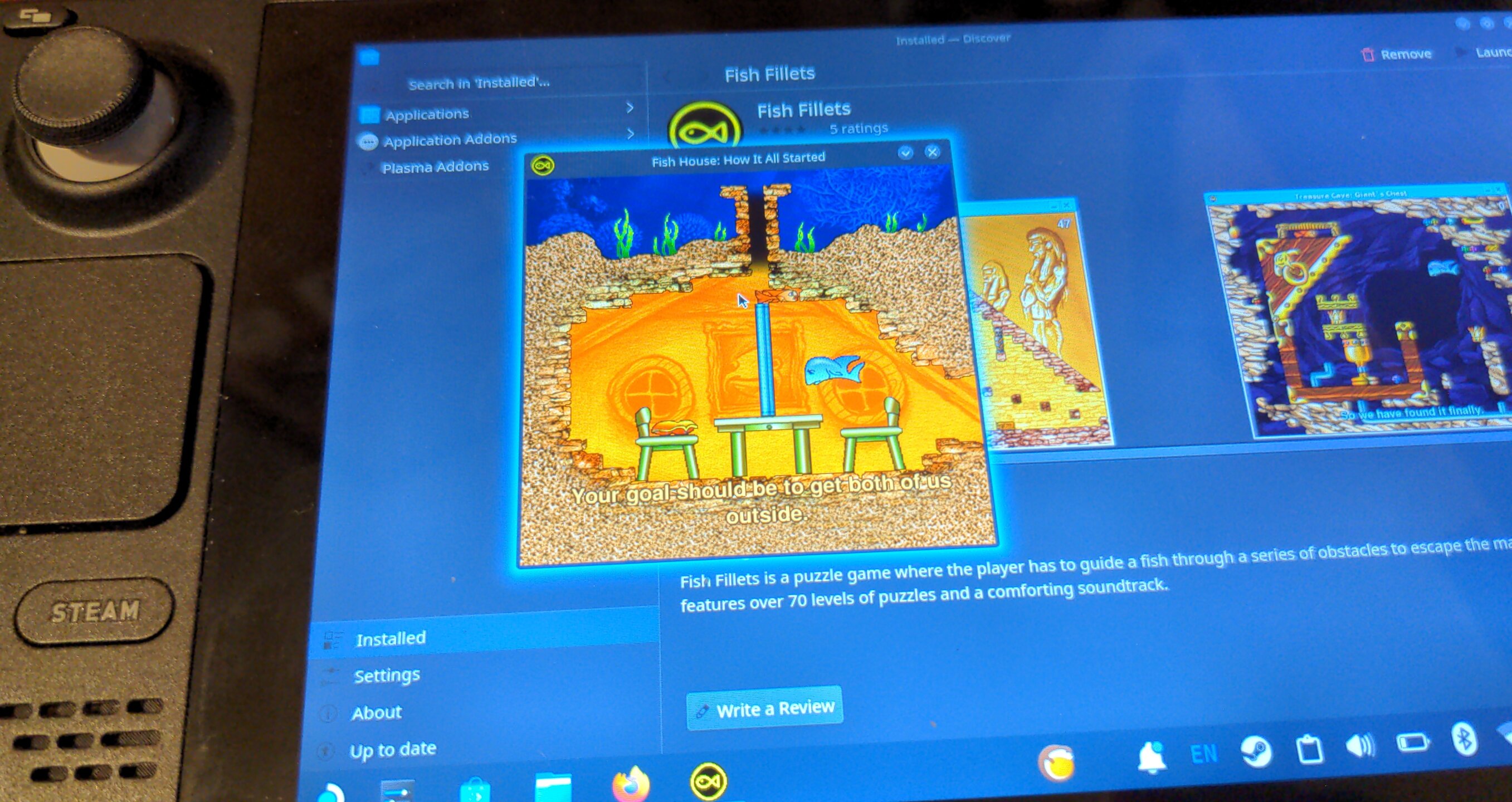 Jak jsem zmínil na začátku, máte k dispozici Linux a software manager. Software manager obsahuje obrovskou databázi různého software, což zahrnuje i spoustu her... No vážně! Některé hry stačí jen vyhledat, nainstalovat a hrát, třeba Fish Fillets.