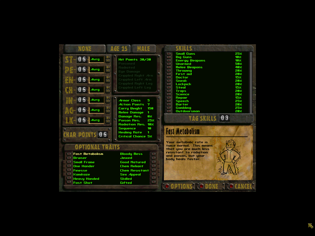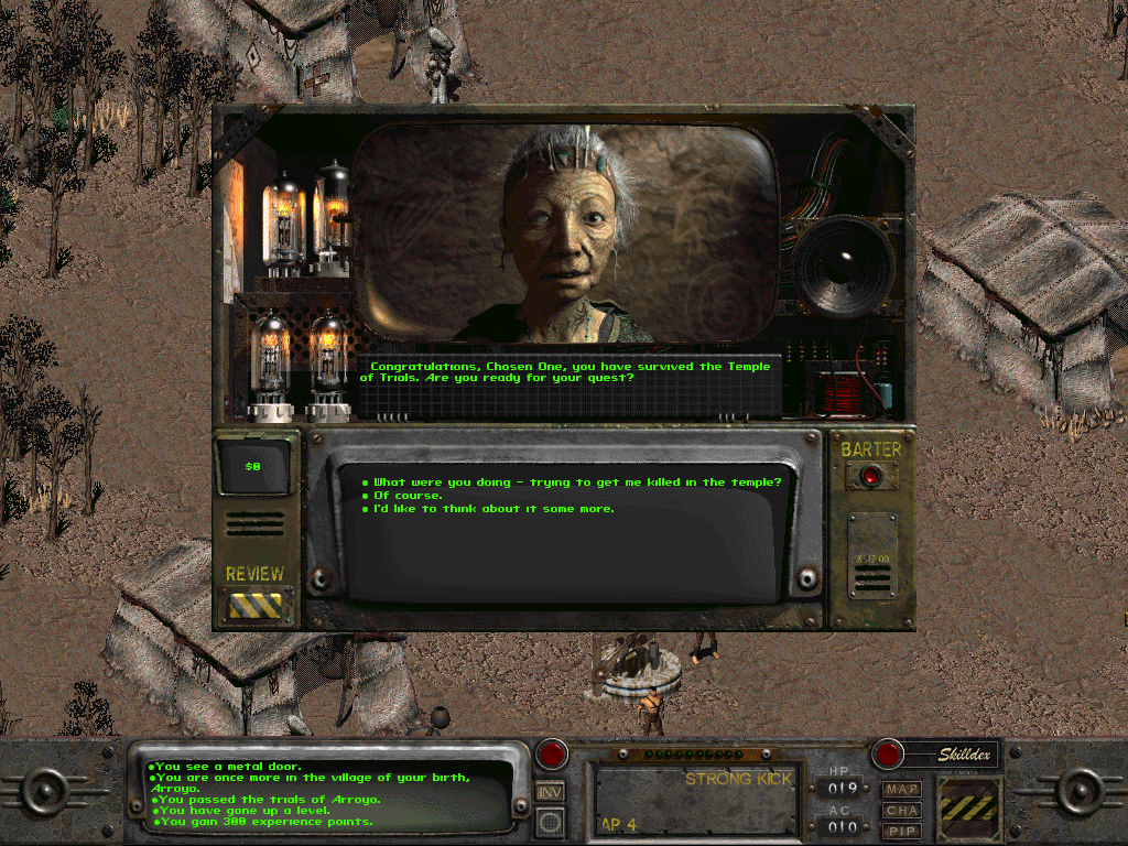 Fallout 2 jsem si nejvíc užil, když jsem krapet cheatoval a nastavil inteligenci a charisma na 10 a schopnost řeč na 200. Těch možností ve vedlejších úkolech lidi ukecat
