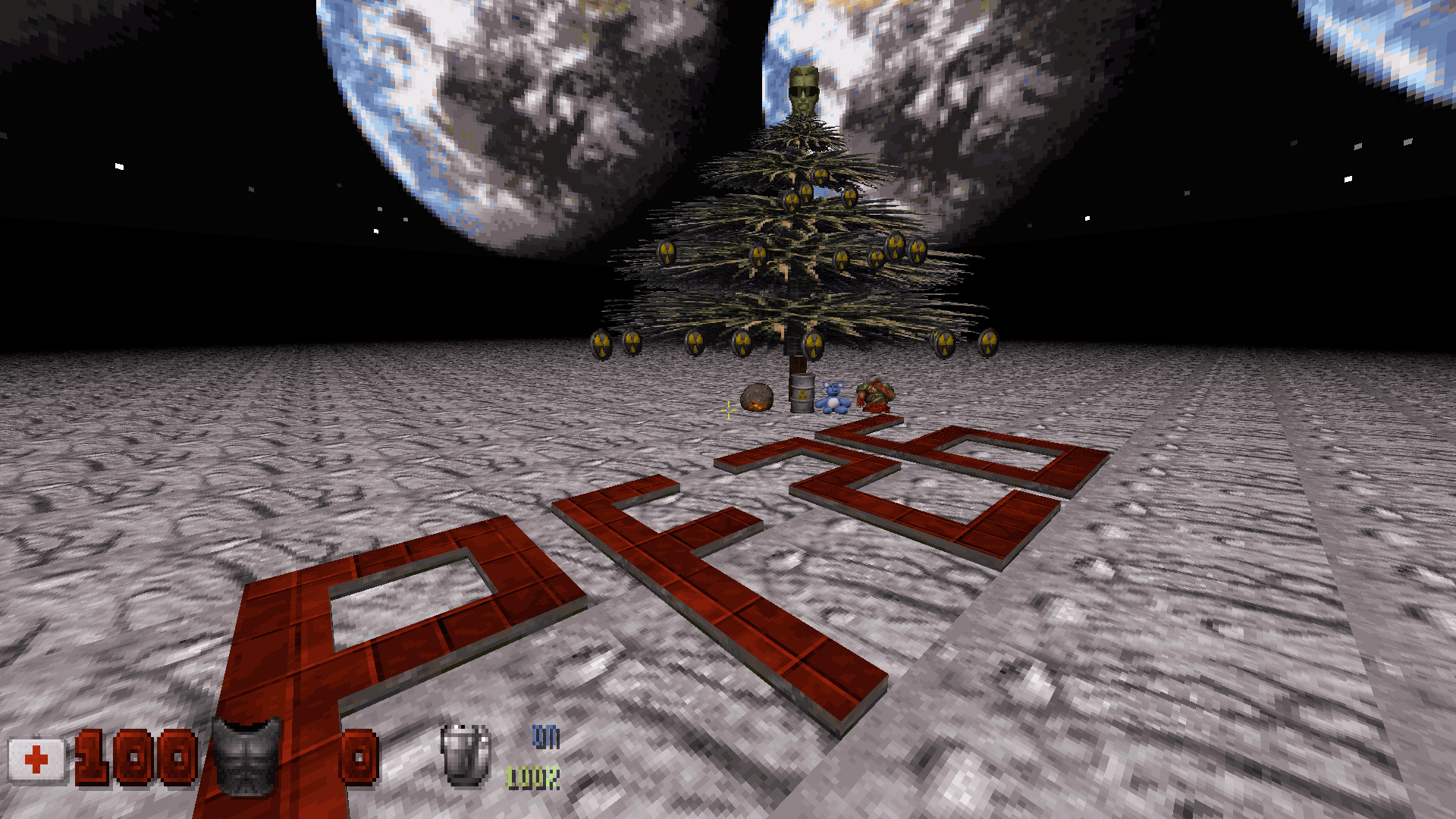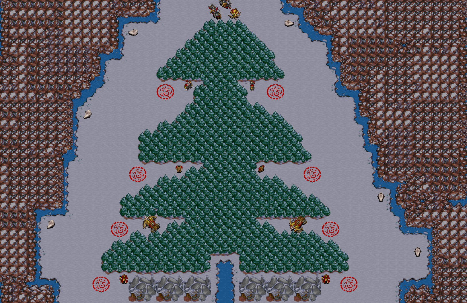 ...a tím je samozřejmě výzva pro vás, drahé čtenáře. Chopte se herního editoru, a nemusí jít jen o editor map, poslouží i editor levelů, a pokuste se z dostupných prostředků aproximovat vánoční stromek. Preferuji editory ze starých her, popř. editory z moderních portů a remasterů starých her, ale svazovat vás nebudu, použijte, co uznáte za vhodné. Můžete použít i stejné editory, které jsem použil pro tvorbu ilustračních obrázků, pokud si myslíte, že si povedete lépe ;)