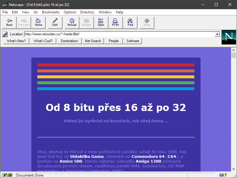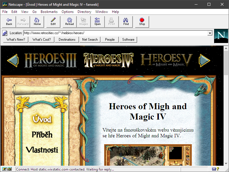 Všech pět webů splnilo základní podmínky, tzn. použití HTML3 (plus mínus) a běh v Netscape Navigatoru 3. Trochu pozlobil webík o Heroes of Might and Magic IV, protože Apache server servíruje .js soubory s hlavičkami, kterým starý Netscape nerozumí.