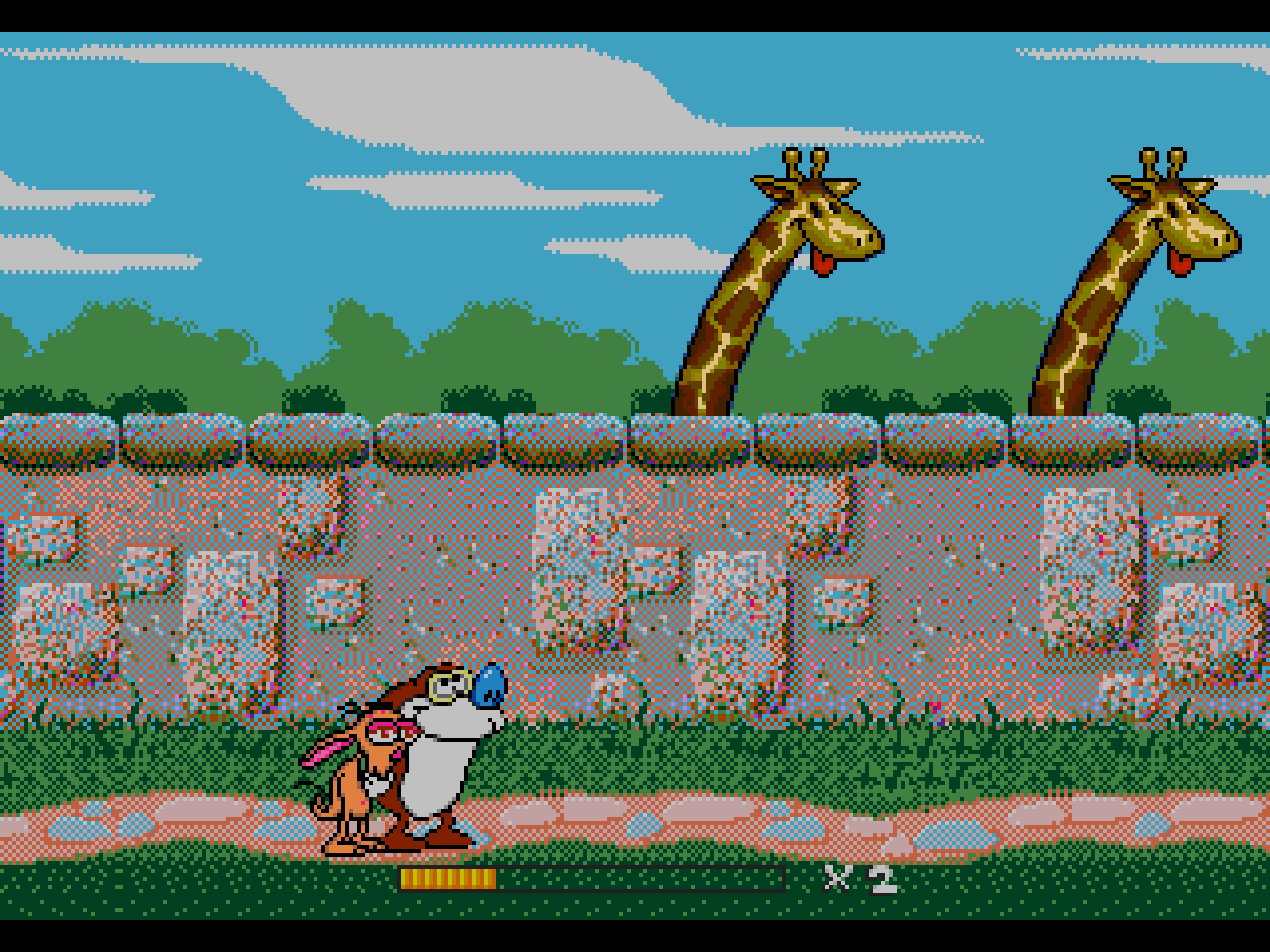 Lze hrát za Rena, kdy Stimpyho řídí AI a všude vás následuje, anebo můžete hrát za Stimpyho a všude vás následuje Ren. Ve výsledku je to jedno, protože se tím nic na ničem nemění. Mění se akorát animace. Třeba když stisknete útok plus nahoru, uděláte nějaký útok směrem do vrchu - pokud hrajete za Rena, tak Ren utrhne Stimpymu nos a hodí ho nad sebe (nebojte, Stimpymu hned doroste další), pokud však hrajete za Stimpyho, tak tlačítko útok plus nahoru udělá to, že Stimpy chytí Rena a hodí s ním do vrchu. Je to úplně stejný typ útoku, ale jen animace vypadá jinak. A to platí téměř pro všechny typy speciálních pohybů.