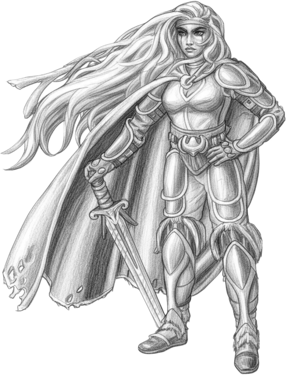 Stojí s rukama v bok, svaly na jejích pažích se rýsují i pod lehkou tunikou a její pohled je přímý a nekompromisní. Vypadá, že by dokázala lámat kosti pohledem. Sira a Mellthas už pokrývají magickou stránku naší party. Co teď potřebuju, je další beranidlo. Rainer je slabý a docházejí mu náboje. Takže chci další sílu do první linie vedle Drirra.