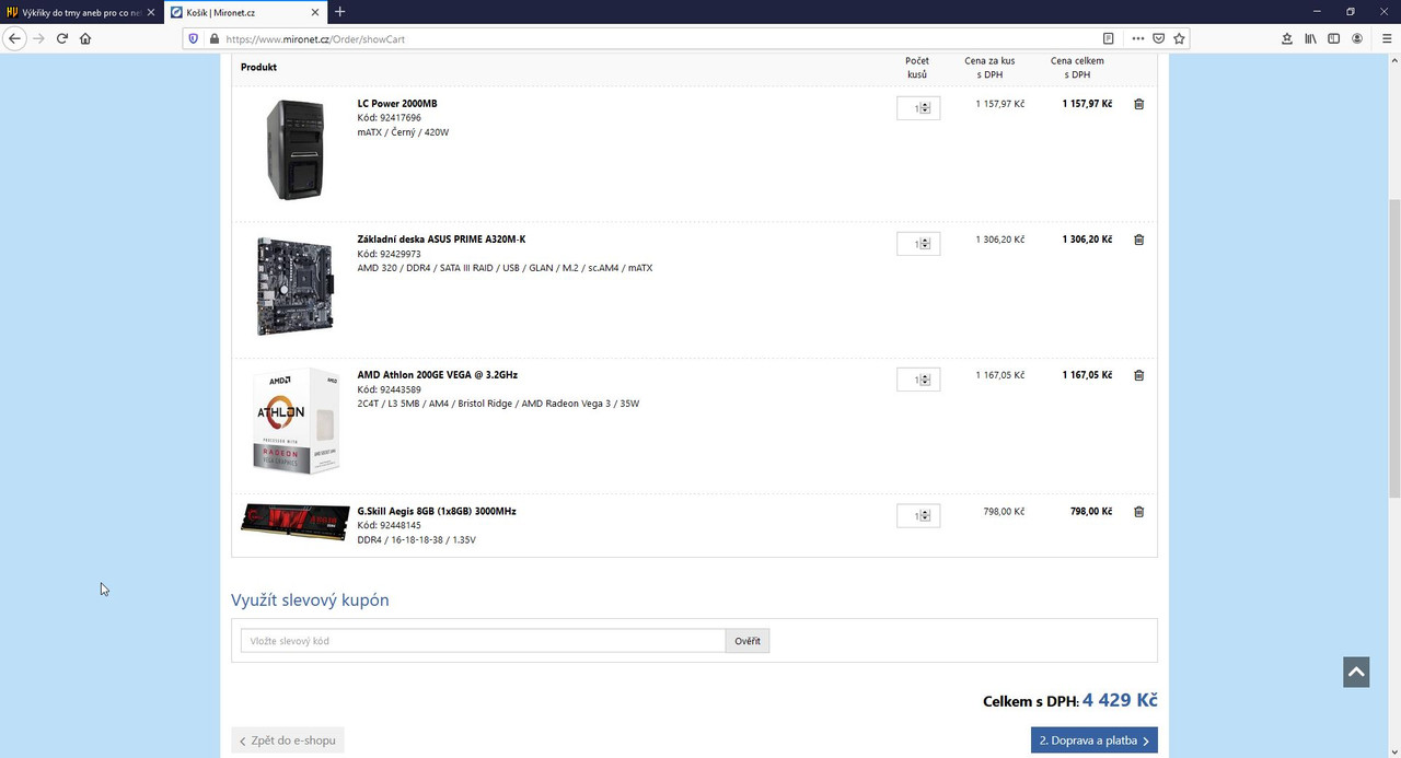 Pochopitelně mně to vyšlo cca dva roky zpět na 1800, dvojku i s dopravou od jinýho prodejce.