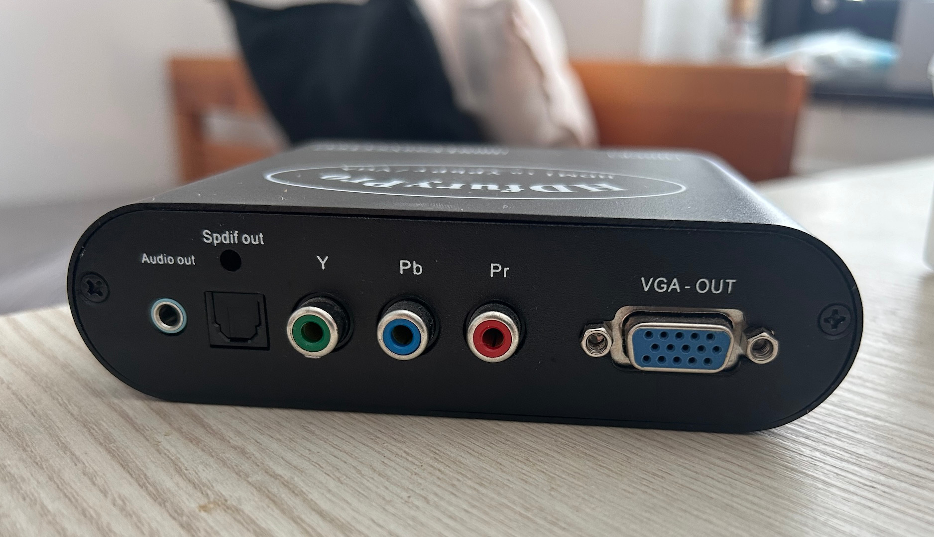 Tento prevodnik jsem zakoupil pred cca 10 lety v S. Americe, pouzival sem ho na prevod HDMI (digitalniho) signalu do CRT televize pres komponentni kabely (byla to takova zvlastni analogova HD televize). Tyto kabely taktez prikladam, nemam zdroj ale mel by stacit klasicky 5v.