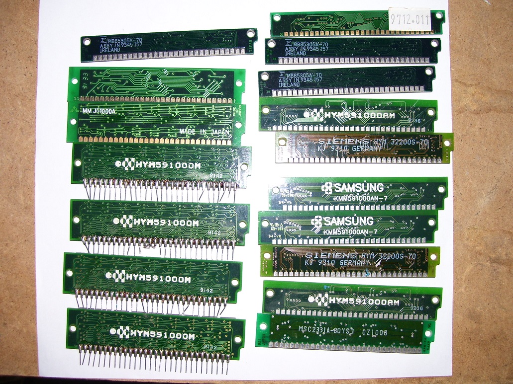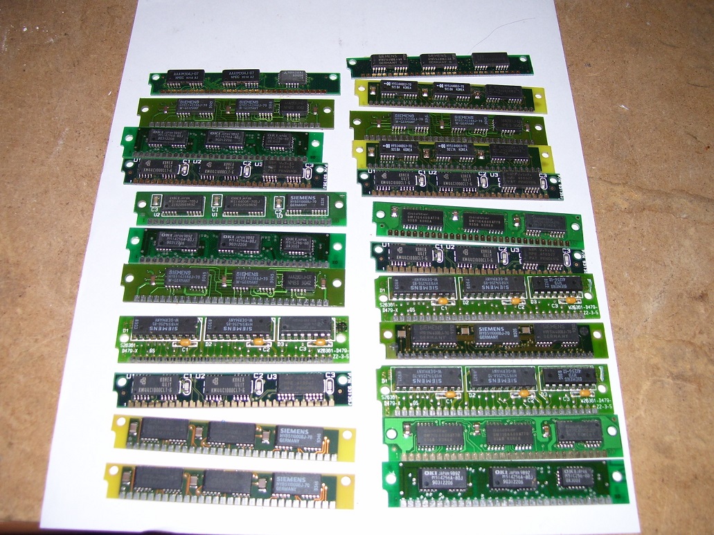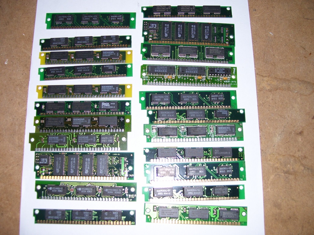 72pin moduly: není to moc čitelné, ale nebojte se zeptat, tolik strojů co mám pamětí určitě mít nebudu, takže opravdu vybírejte. Dnes pomůžu já Vám, zítra Vy mě třeba. Samozřejmě ideální je si přijet se strojem a odvézt funkční. Posílat poštou sem a tam, že zrovna ve stroji nenaskočí není optimální.