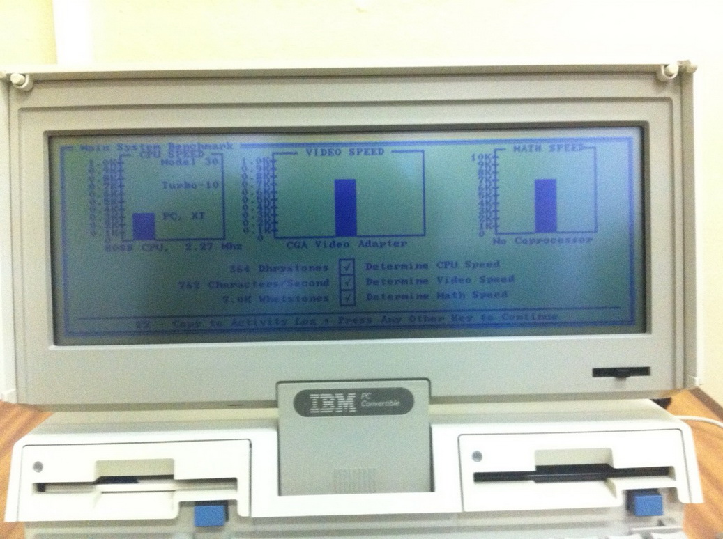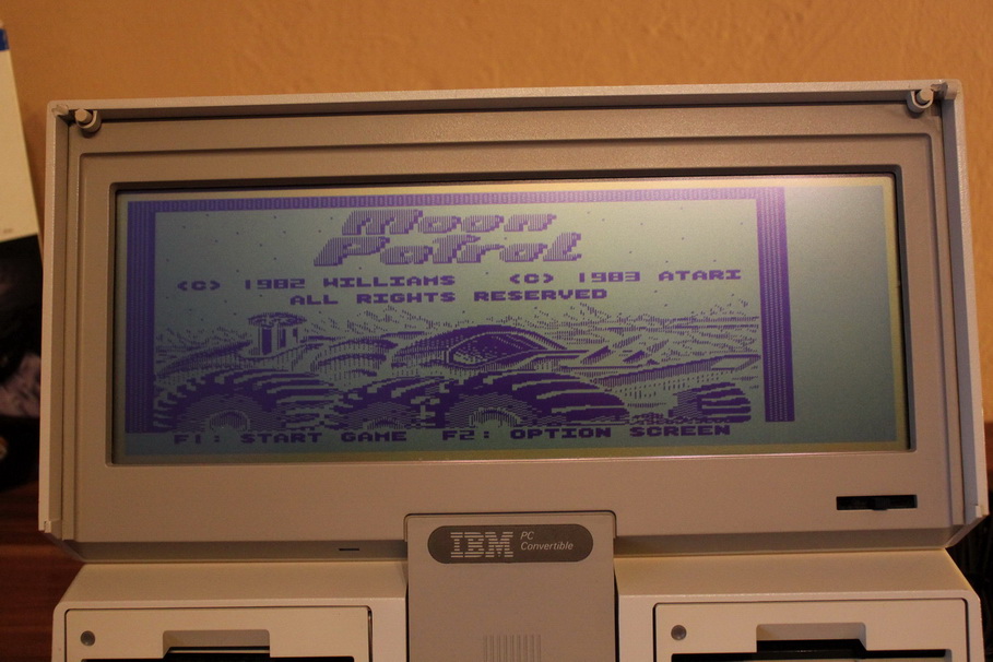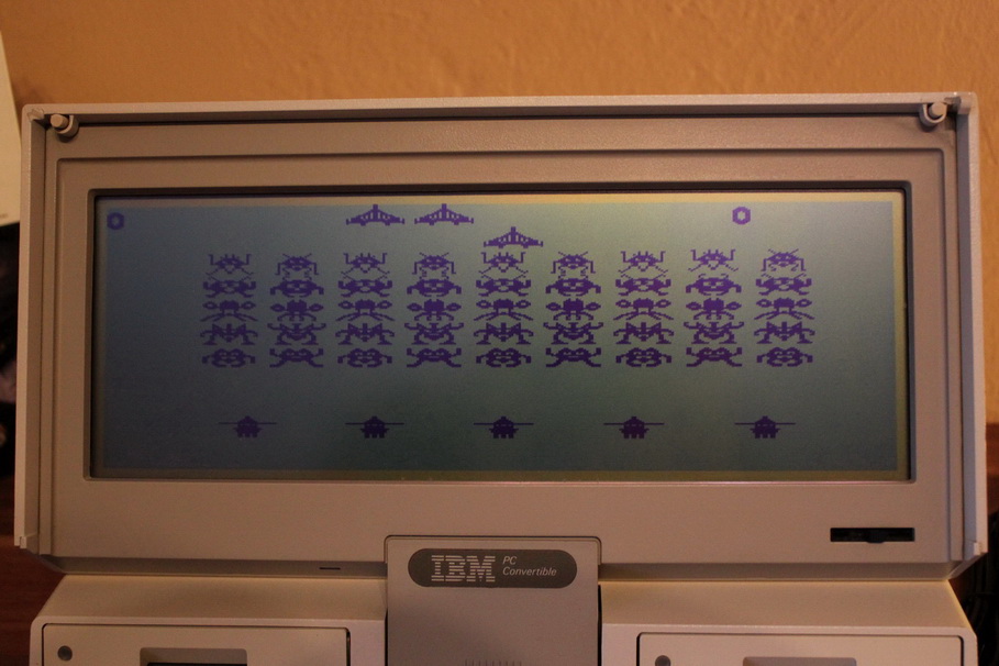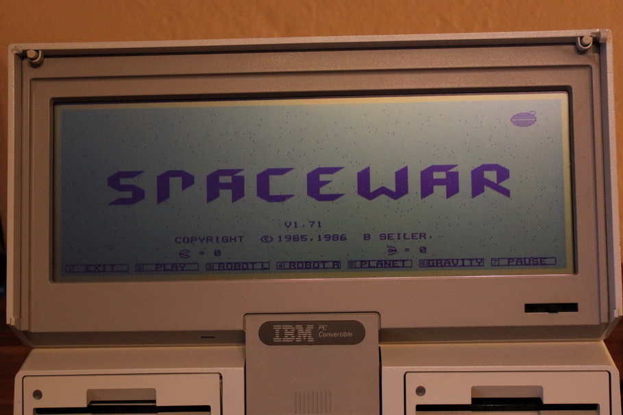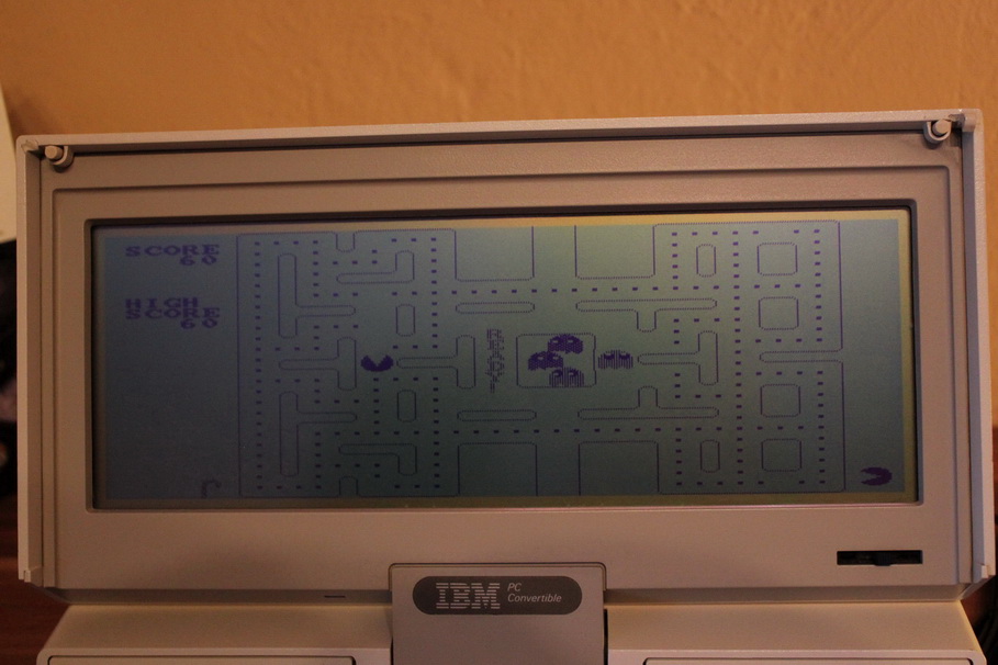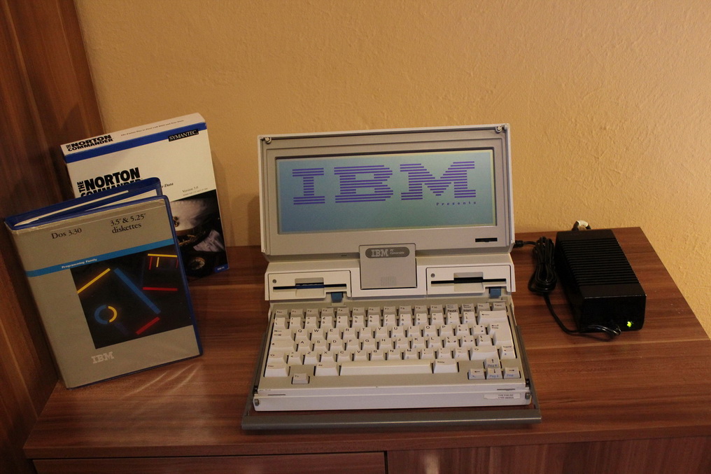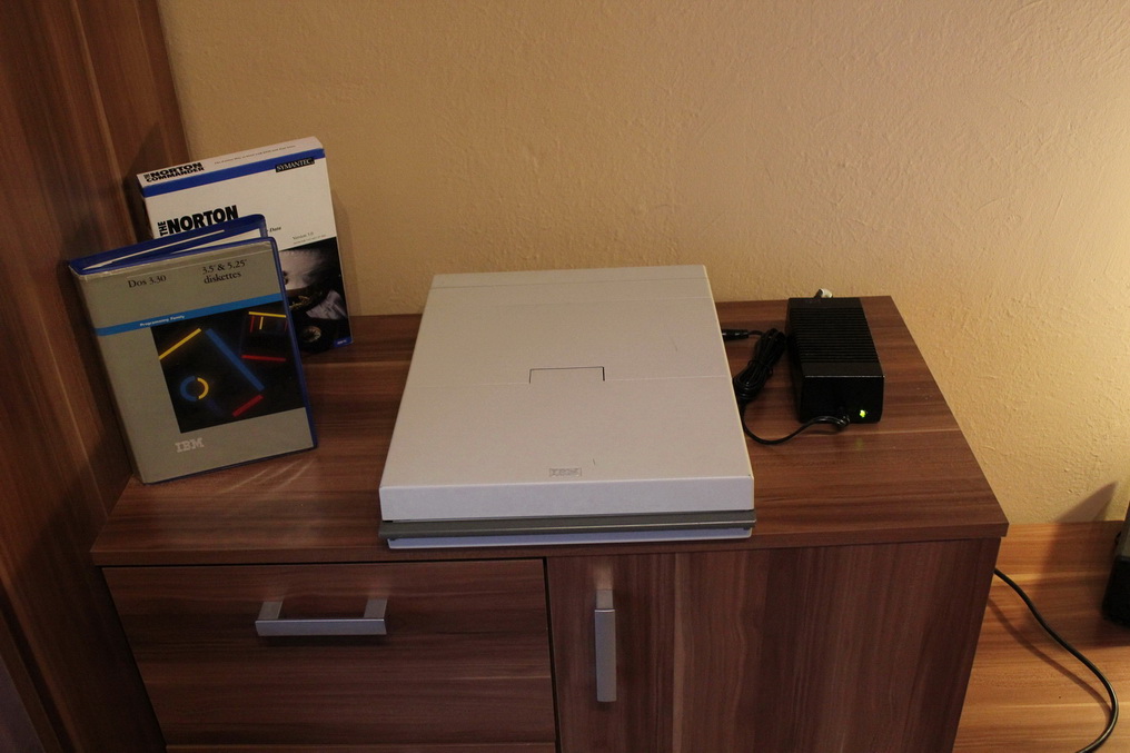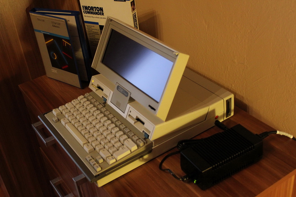 A tu uz samotny pocitac, takze IBM PC Convertible, vyrabany v rokoch 1986-1988, prvy notebook od IBM, vyrobenych iba 23.000 kusov, neujal sa, je to jeden z velkych predajnych failov IBM. Procesor intel 80c88 4.77Mhz, RAM 256-640kb (ja mam 512kb), vdaka novsej technologii RAM (statickej) pamate je priblizne o 6% rychlejsi ako PC XT aj ked maju rovnaky procesor (80c88 je len mobilna verzia) grafika monochromaticky CGA kompatibilny LCD display 640x200 text, 320x200 grafika. Su dve verzie, s podsvietenym a s nepodsvietenym displayom, ja mam to druhe, kontrast dost biedny, na dennom svetle zle citatelny, v noci este horsie :D