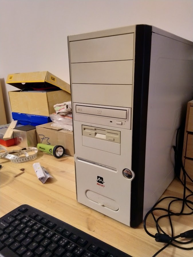 Ale sehnal jsem case! Ještě není doma, ale mám z něj radost. Nejen, že rozměrově přesně zapadá do toho, co jsem hledal, ale navíc je dobový a tedy patřičně ohavný, původně v tom bylo Pentium 3 / 900MHz - sestava Medion PC MT5. Dokonce i samolepky sedí :)