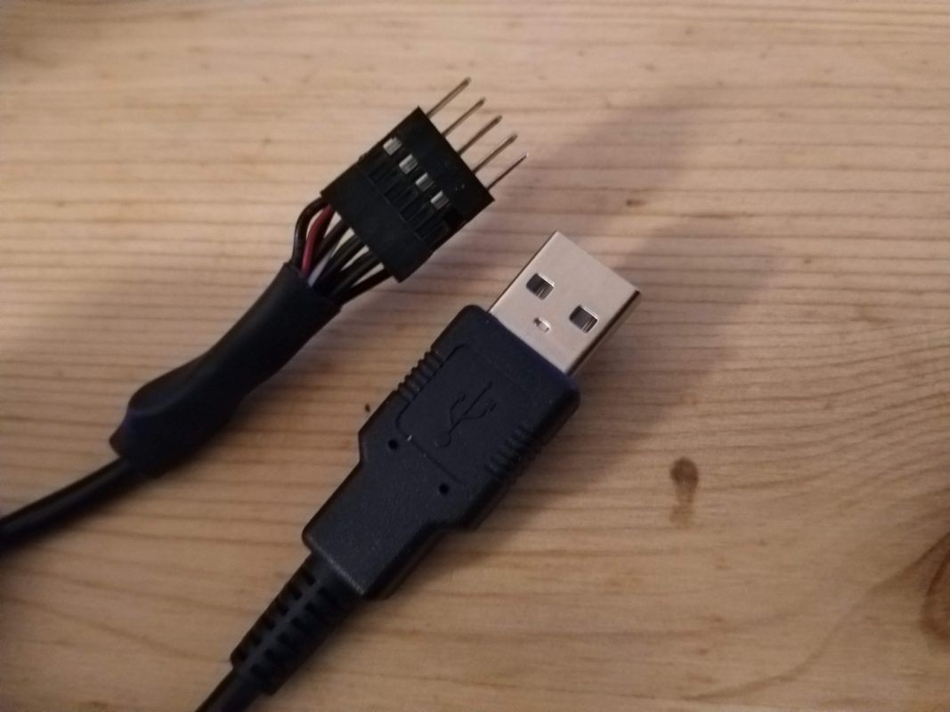 Číňan má kabel na všechno! Deska nemá ani jeden USB header, musím si vystačit s dvojicí USB konektorů vzadu. Samozřejmě bych ale chtěl využít přední USB na bedně a tahle vymyšlenost to řeší :) Stačí to nějak kreativně protáhnout zvenku dovnitř, což nebude problém, protože plech kolem konektorů nemám, místa je tam spousta.