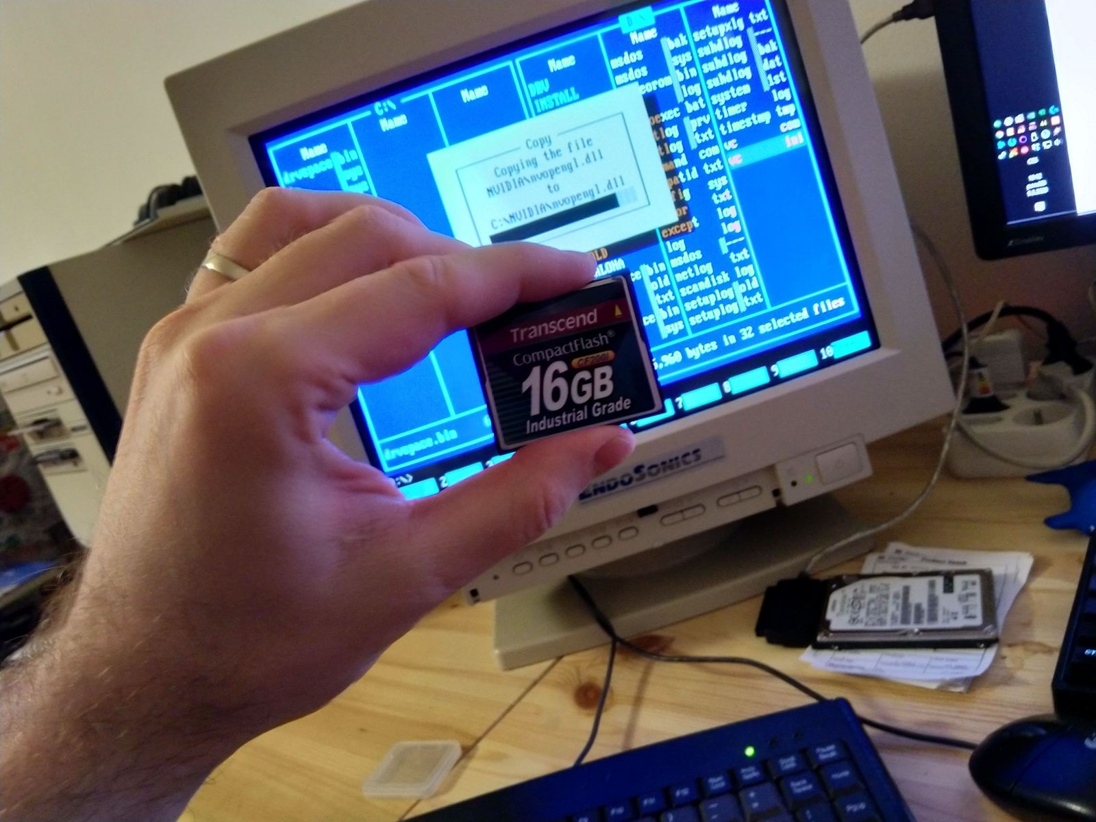 - 2x 16GB CF karta vyšší kvality (industrial grade! :), jedna už je zformátovaná a kopíruje se na ní obsah staré 4GB karty. Na tu té druhé bych mohl zaexperimentovat s nějakým alternativním OS, třeba OS/2