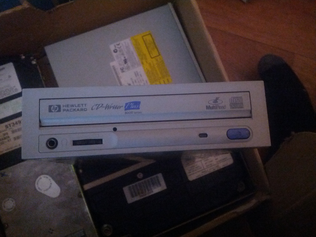 Na první vypalovačku si ani nevzpomínám, nebyla to pro mě úplně zásadní komponenta, zato zoufalý hon na jakoukoliv CD-ROMku si vybavuju pořád docela dobře. Koupit novou v ceně několika tisíc korun bylo naprosto mimo mé možnosti, nezbývalo než obíhat bazary a somrovat po movitějších kamarádech.Nezapomenu na zoufalé pokusy zprovoznit mechaniku, která sice četla, ale nebyla ochotná se otevřít a CD si zpracovat. Tzn. jediná možnost, jak CD přečíst, byla rozmontovat mechaniku, vložit CD, zacvaknout kousky, co musely být zacvaknuty, smontovat a připojit. Řešení pomocí důmyslné kombinace hřebíků a táhel z vlasce se ukázalo jako naprosto nefunkční :)
