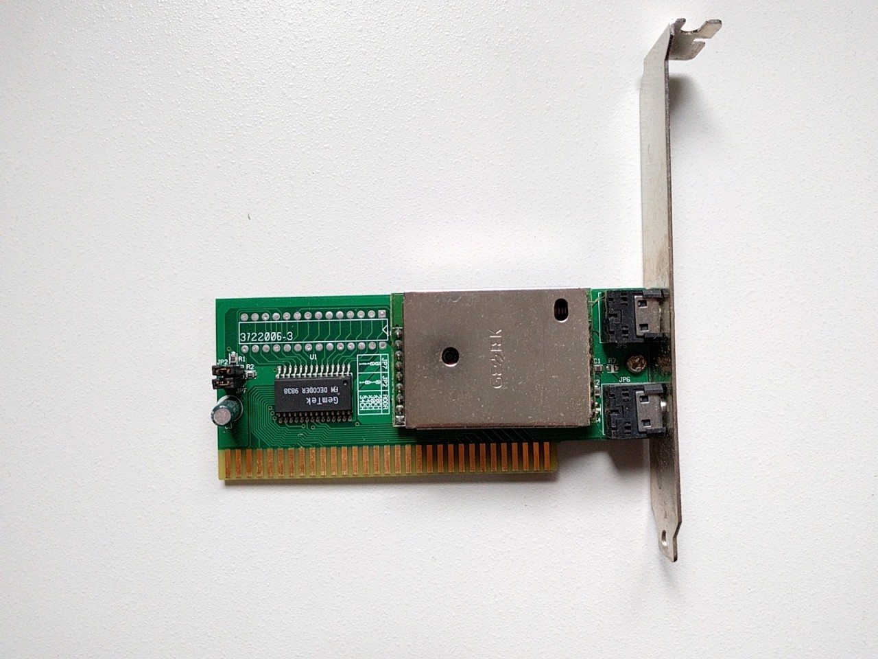 Tak radio karta funguje, děkuji za foto antény od Ivenca. Zatím vyzkoušeno s obyčejným stereo jack-cinch kabelem jako anténa a "nějak" to hrálo, časem zbastlim něco, co se bude podobat originálu.