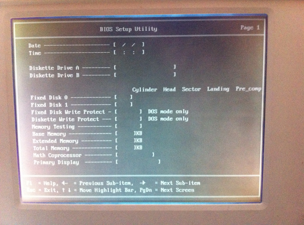 takze novy clen mojej zbierky, chcel som dosovsky notebook na doma ale zatial som moc poteseny neni. Notas Alcatel 8565, 386SX, 2BM RAM, 80MB disk. CMOS baterka je mrtva, ale to by nebol az taky problem. Problem je, ze sa nemozem dostat do nastaveni biosu. Ked stlacim "system configuration setup" dostanem tuto tabulku a tu som skoncil. Nic viac uz nemozem robit nic menit, ani opustit tabulku, nejde ani reset. Po par stlaceniach klavesnice uz len pocitac pipa po kazdom stlaceni klavesu...