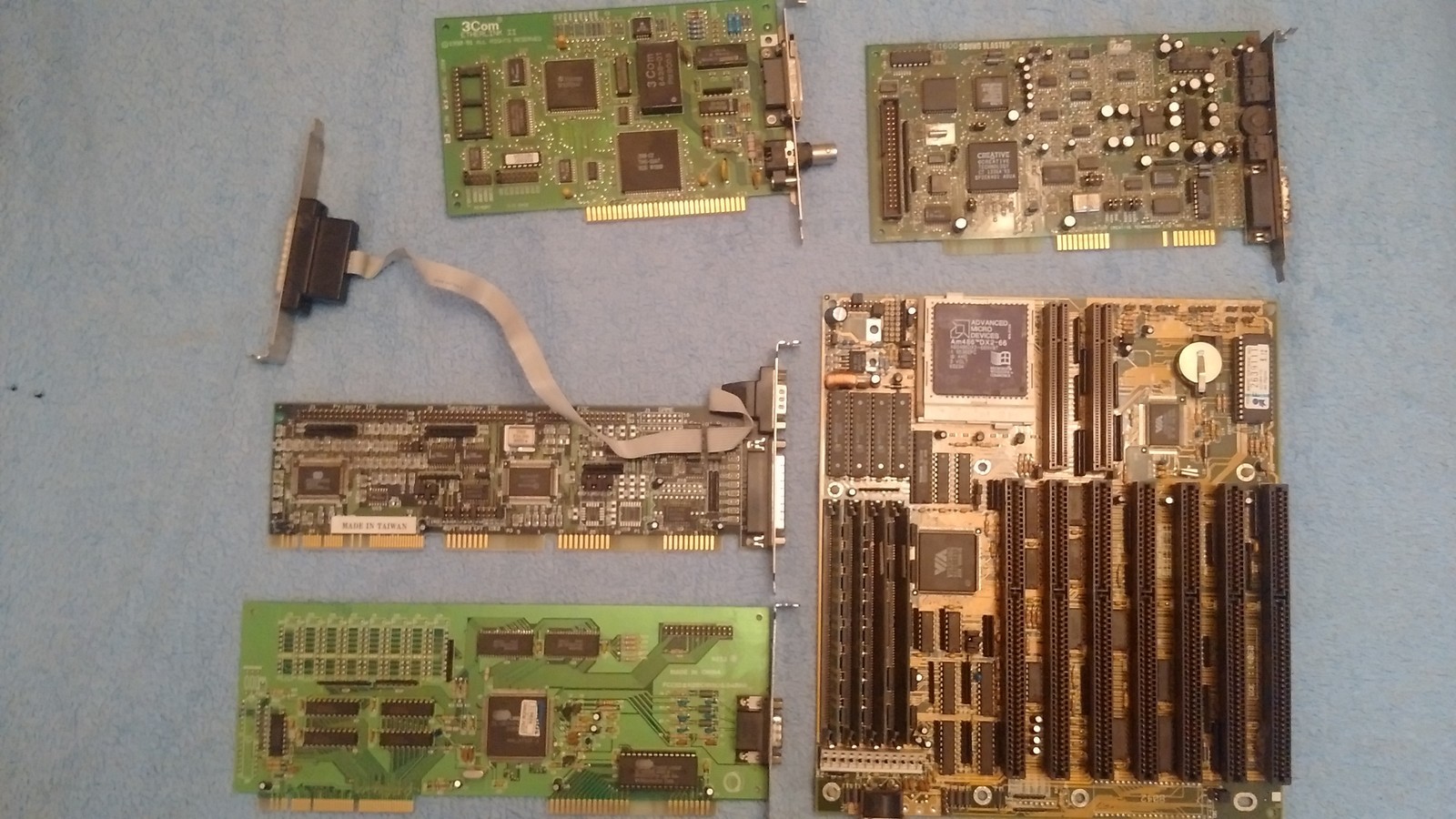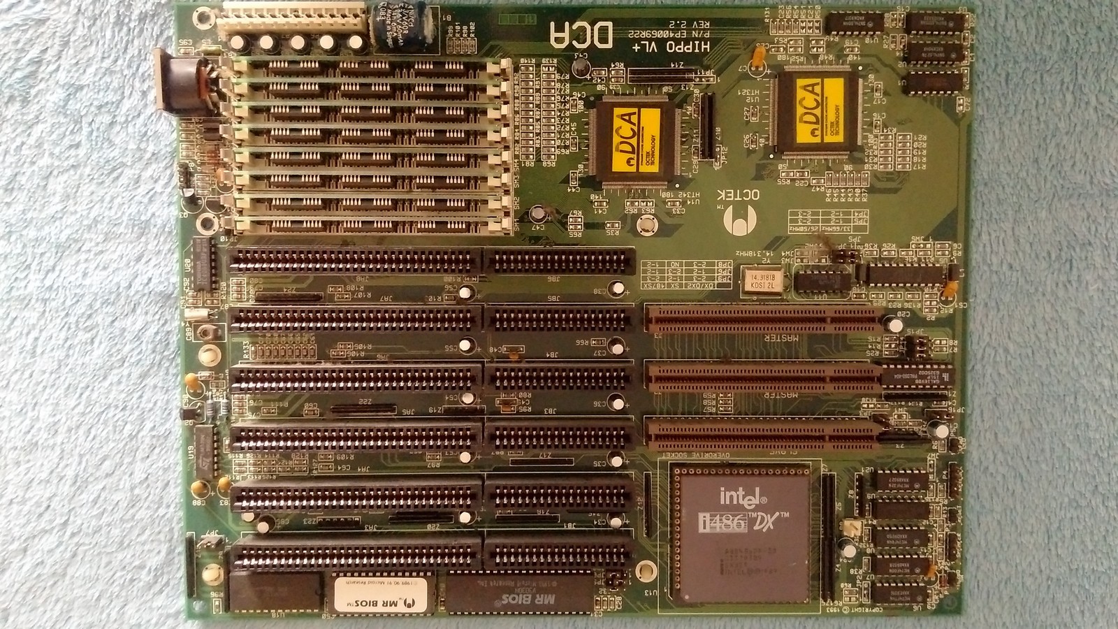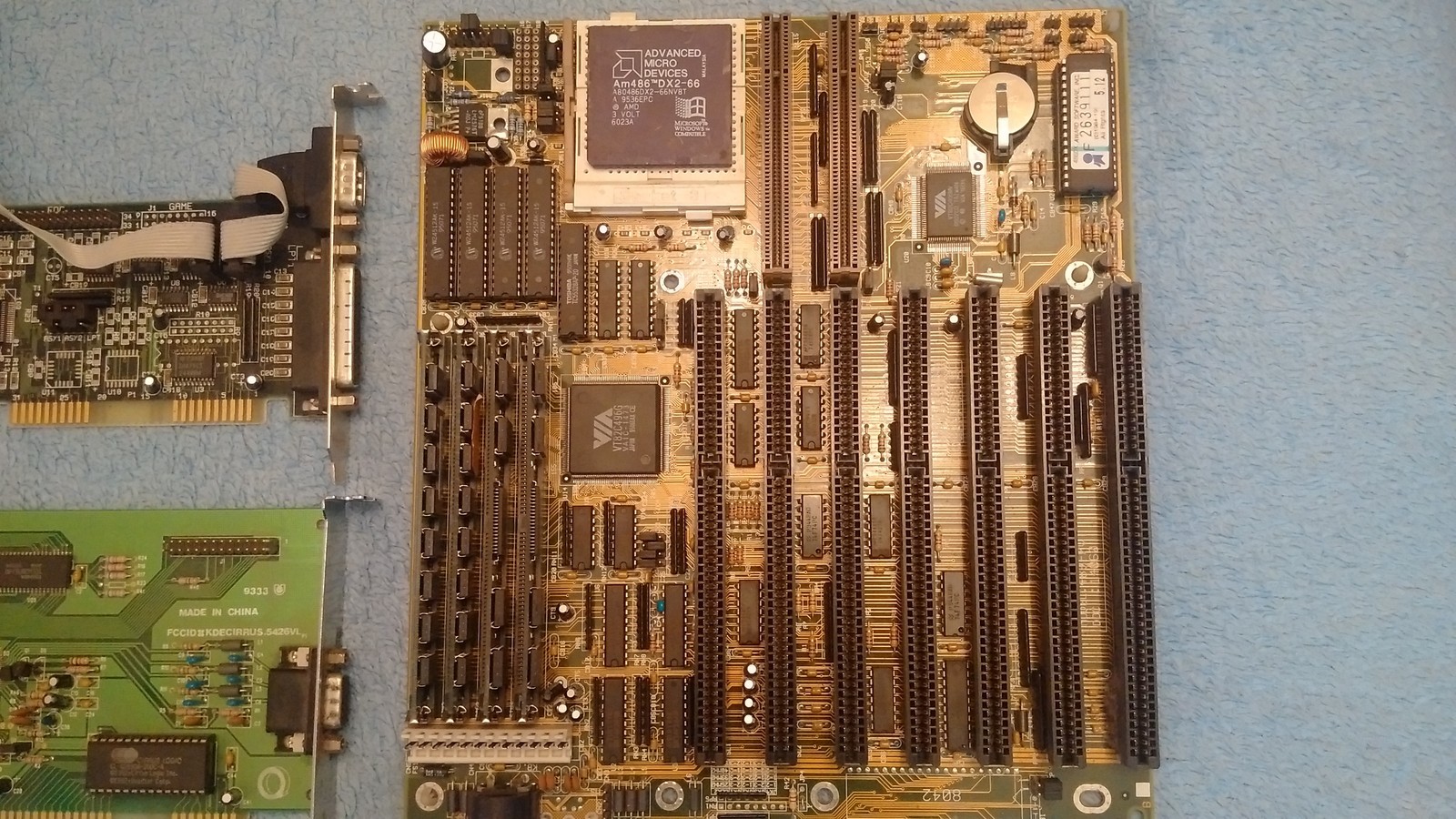 Dodatek k předchozímu postu. Obě výše zmíněné základní desky fungují, té níže však zlobí VLB. Jednoduše jeden ze slotů grafiku vůbec neakceptuje, při zapojení do druhého se na displeji ukáže jen bordel. Foceno s jinou grafikou.