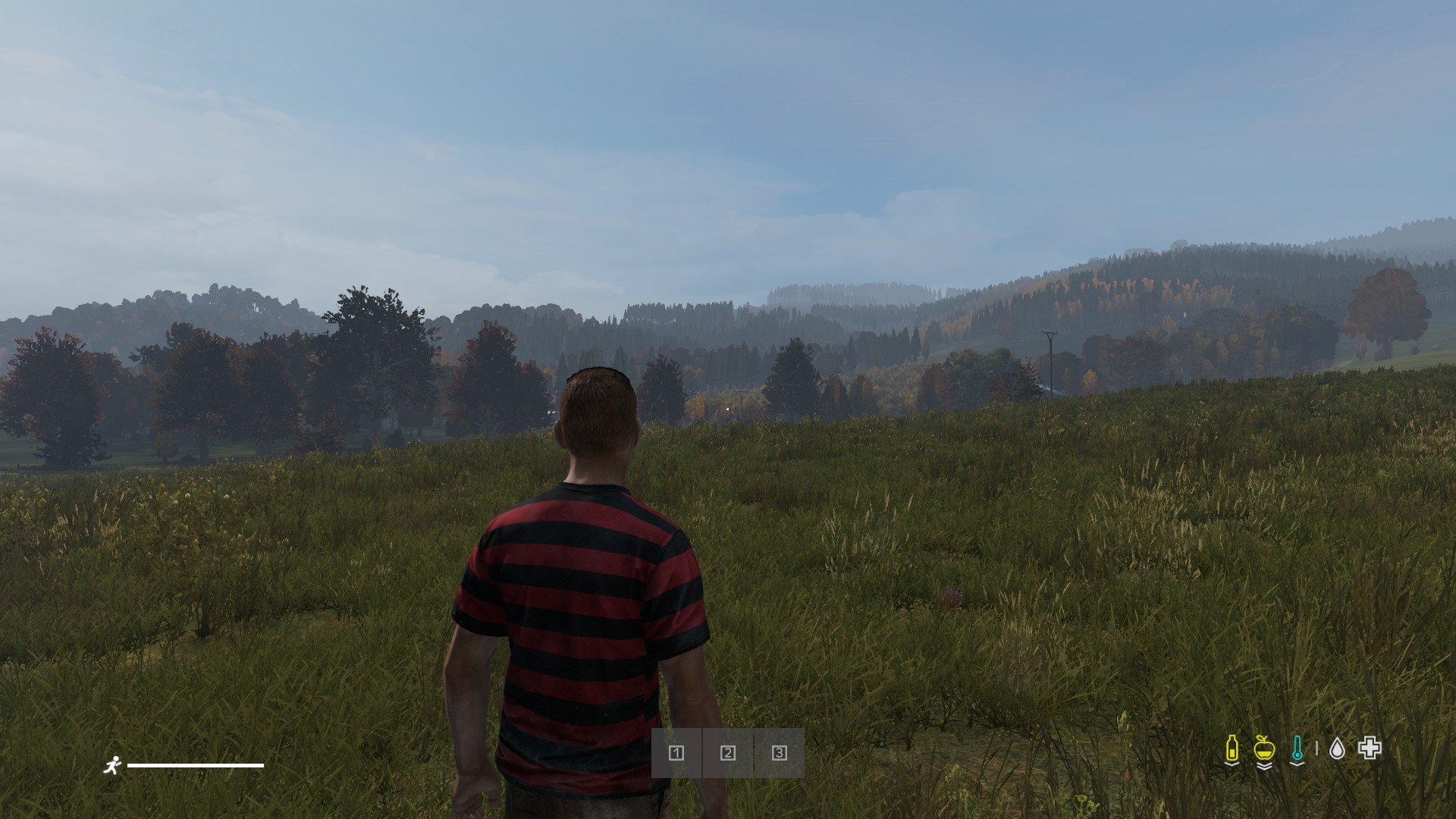 Při prvním připojení na server s novou postavou vás hra vyhodí na jednom z mnoha míst pro to určených. Byť jich je dost, většinou je to u nějakého většího města, tak spousta hráčů se zdržuje někde poblíž, takže moc lootu v nich nenajdete, a to je problém. Do začátku máte na sobě triko, boty a kraťasy, ze spotřebních věcí dostanete obvaz, chemické světlo a něco k zakousnutí, hrušku, švestku, zkrátka něco, z čeho jde vypálit nějaký chlast. Jelikož se objevíte s polovičními ukazateli hladu a žízně, tudíž od začátku hladovíte, ihned sníte přidělené ovoce. Taktéž teploměr neukazuje úplně zdravé hodnoty, takže vedle jídla je dobré si najít něco teplého na sebe. Takto donutit hráče hnát se zprvu po základních potřebách a až potom po věcech, jako jsou zbraně hromadného ničení, je vlastně dobrý nápad.