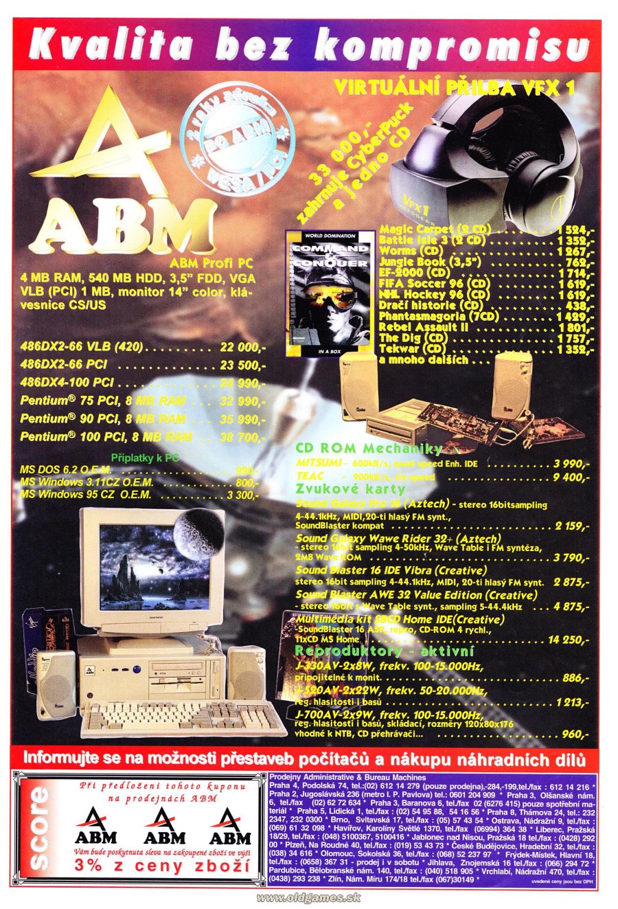 Bylo ale něco takového možné v té době bez problémů koupit? Samozřejmě, viz inzerce níže ze SCORE č. 24 (prosinec 1995). Disk o kapacitě 540MB v naprosto běžné sestavě se 486DX2/66MHz, cena počítače 22 000 Kč. Pro pobavení, jde o cenu bez zvukové karty, ta by vás v případě Sound Blaster kompatibilní zvukovky od výrobce AzTech přišla na dalších 2 159 Kč :)