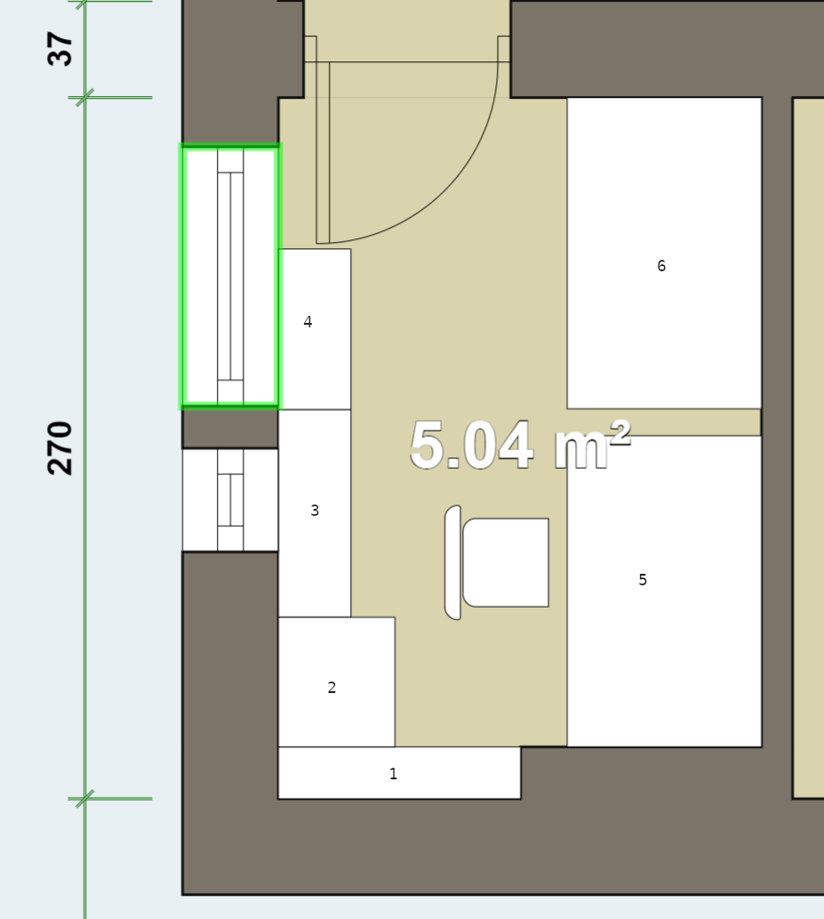 Začněme od konce - čísla 5 a 6 jsou jasná, jde o mé současné dřevěné stoly o rozměrech 120x75cm. Laciná lepená smrkoborovice z IKEA určená k použití coby jídelní stůl, ale mám je rád. Proluku mezi nimi plánuji něčím zaplácnout a získat tak spojitou plochu. Na stole číslo 5 budu bojovat já, stůl číslo 6 bude externí pracovní plocha a zároveň příležitostná herní stanice pro dcerky. Pod stoly, stejně jako teď, nacpu mraky plastových boxů, a co není na plánku vidět - nad stoly je instalována skříň ve stylu kuchyňské linky o délce cca 2/3 místnosti, to nějaký úložný prostor dá.