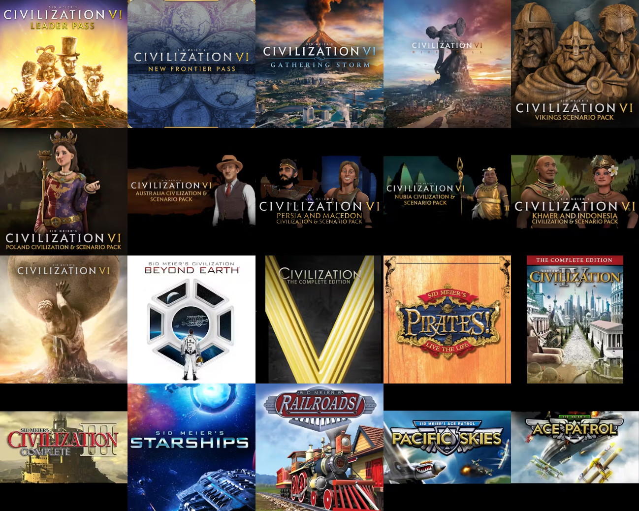 V první řadě kolekce zahrnuje strategický skvost Civilization VI, a to včetně desítky datadisků. Dále obdržíte následující pecky: