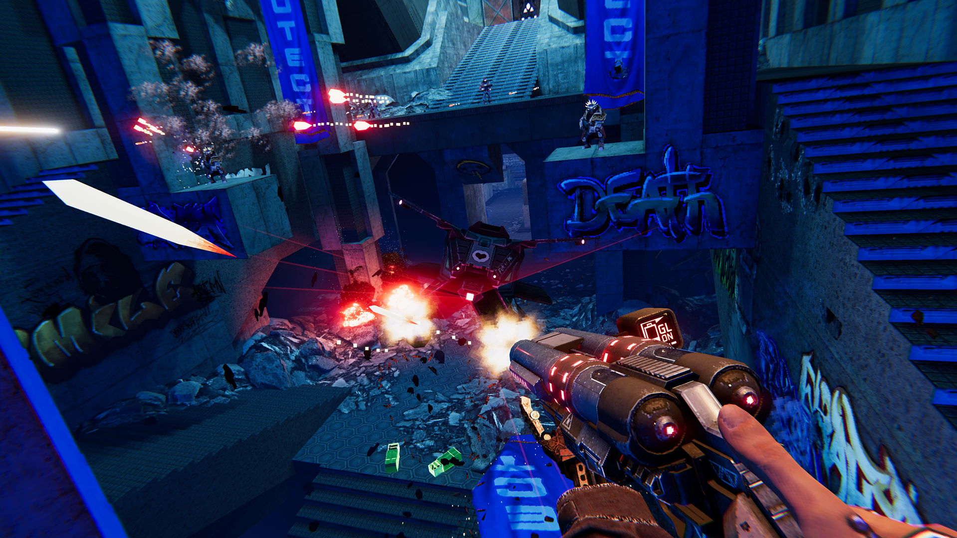 A že tu výhodu bude potřebovat, jelikož v ultra-násilném kyberpunkovém světě budoucnosti se Johnny Turbo, jak se hlavní hrdina jmenuje, musí zbraněmi sakra ohánět. Kriminalitou a chaosem zmítané město Paradise potřebuje dokonalou očistu, a oním pomyslným Mr. Properem jste pochopitelně vy. Vizuál je jasně inspirovaný Blade Runnerem a v současnosti populární retrowave / synthwave vlnou, herní tempo je mixem nového Dooma, starých pořádků, samozřejmě patřičně over-the-top a s hlasitostí osolenou doprava a na 11.