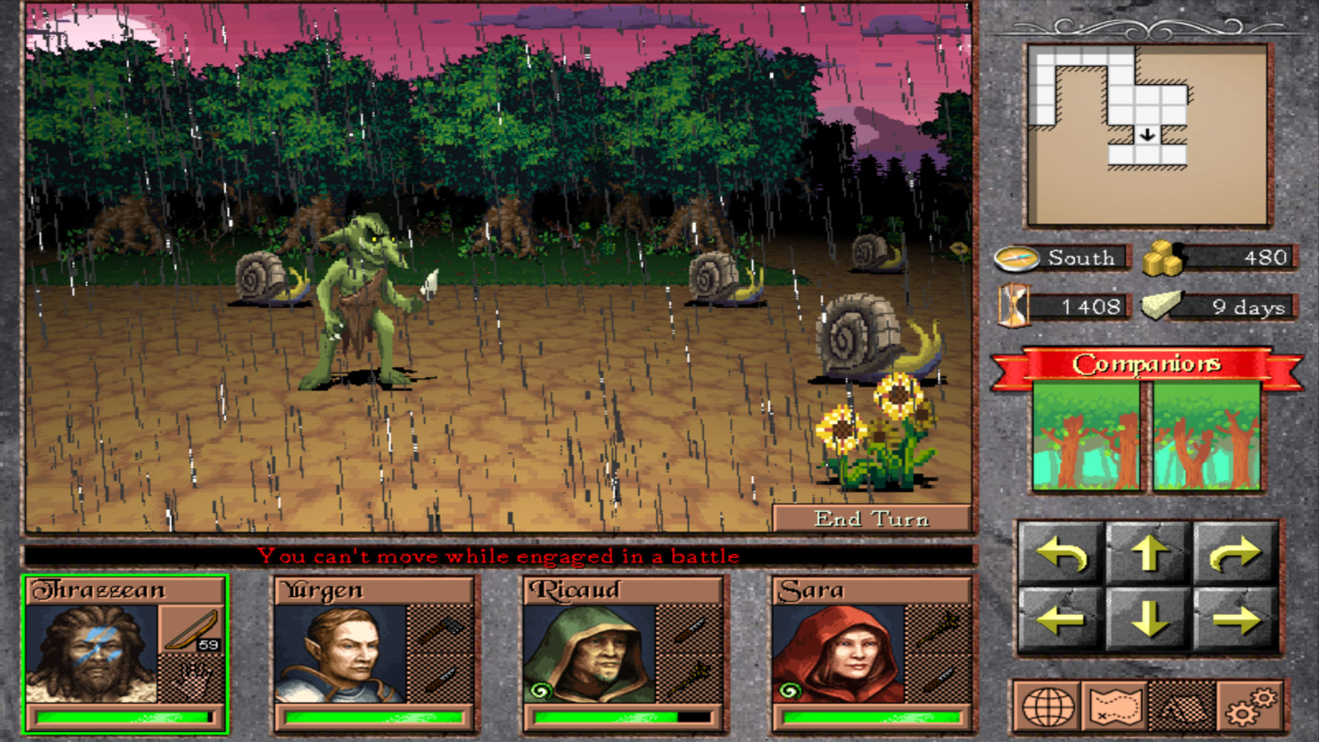 Demo o velikosti lehce přes 10MB jsem řádně prozkoumal, leč do vítězného konce nedotáhl. Neomylně jsem si totiž navolil strašlivou bandu jelimanů, kterým velmi brzy došel dech. Hlavní střelec velmi brzy pozbyl všech šípů a žádné další nenašel, klerik se ukázal jako úplně zbytečný, a mág prskal firebally síly vlhké zápalky. Hlavním generátorem škod tak byla bojovnice se sekerou v ruce, která situaci zachraňovala až do chvíle, než jsem potkal Glumova ohyzdnějšího bráchu. Ten je vůči fyzickým útokům zdá se rezistentní a vrhač vlhkých zápalek to nezachránil. Snad budete mít větší štěstí :)