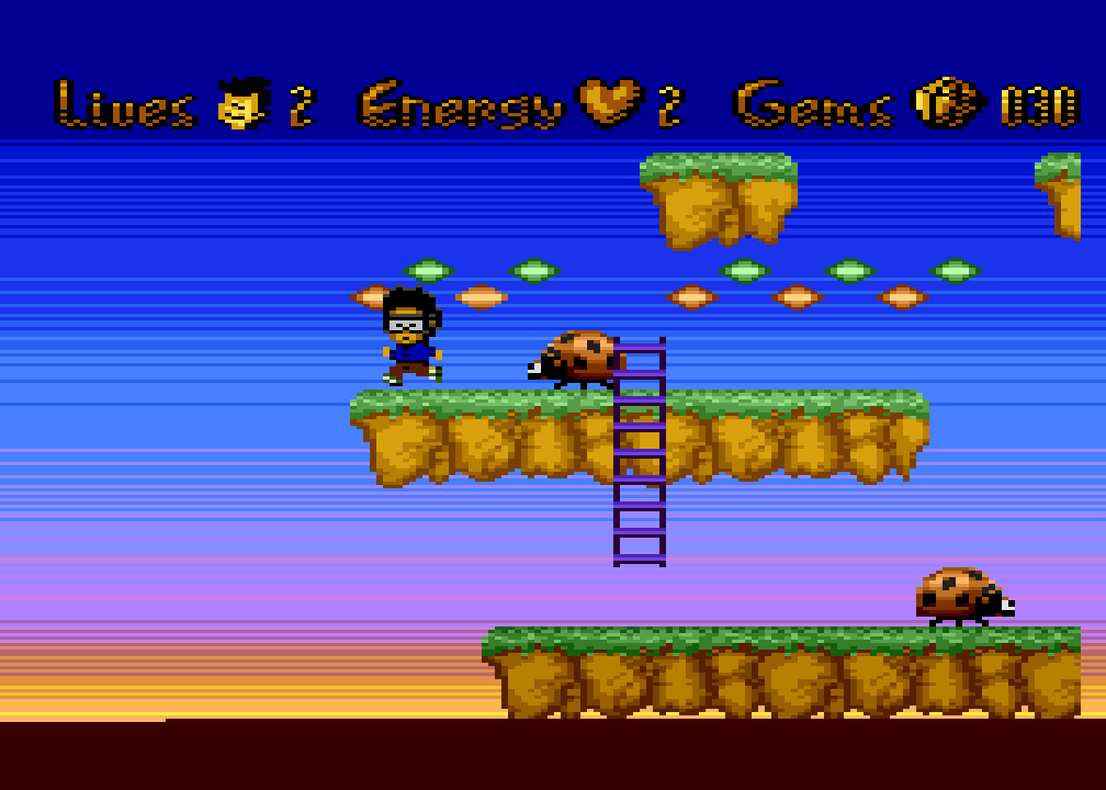 Herní náplň je nenápaditá - hopsejte kolem, sbírejte drahé kameny a vyhýbejte se nepřátelům, kterými jsou v tomto případě neřádi z říše hmyzů. Ale v tomhle případě opravdu nešlo o revoluční herní mechanismy, jako spíš o to vymáčknout z Atarka nevídanou grafiku. A podařilo se :) Pokud vás zajímají technické podrobnosti, začtěte se do popisu v polštině. Pro spuštění hry je vhodných 128 kB RAM, ale hra se spustí i se 64 kB, byť jen v omezeném "demo" módu. Stahujte zde.