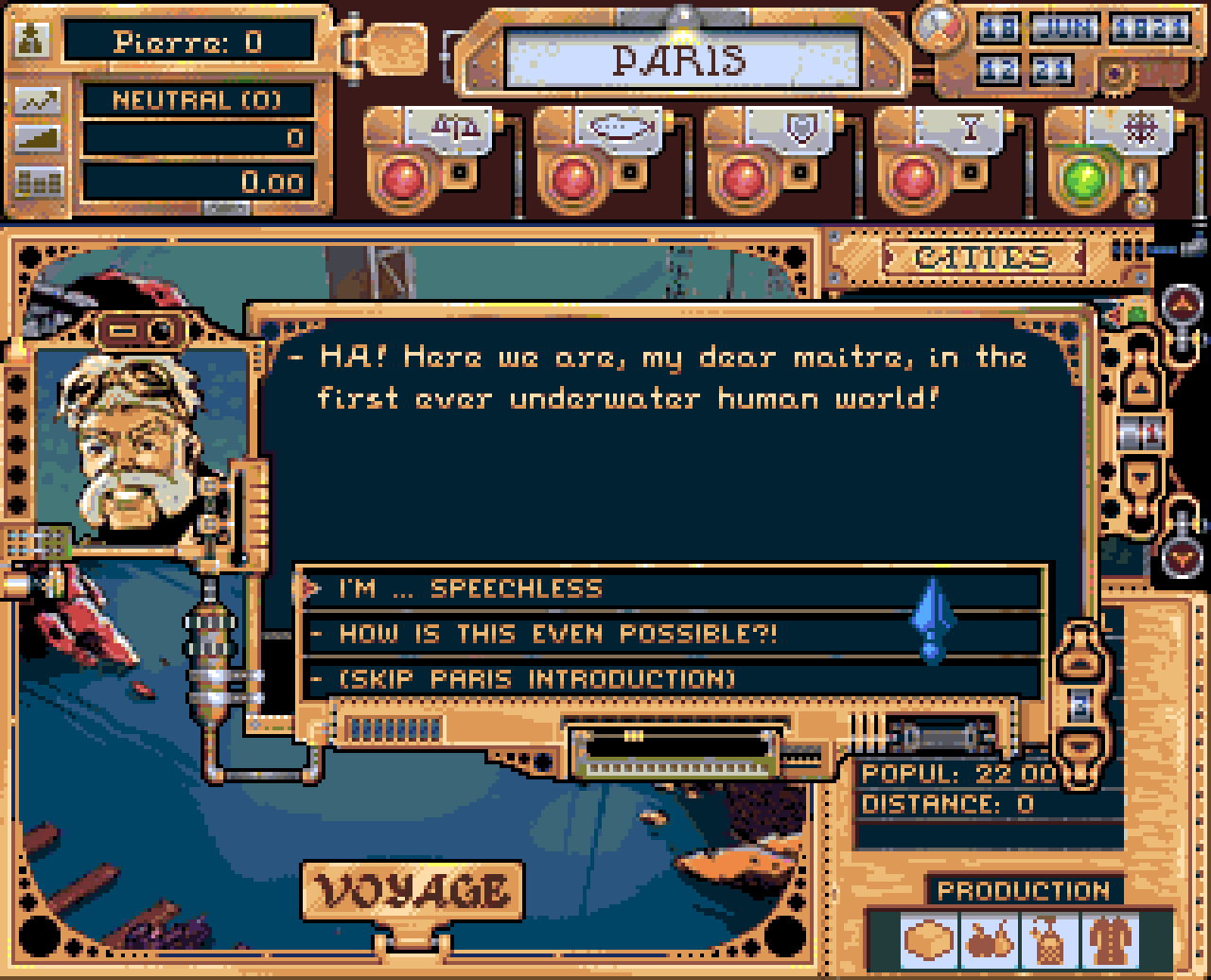AQUABYSS je podmořským sandboxem, který je inspirován klasikami jako Pirates! či sérií Elite. Obchodujete, objevujete, vylepšujete ponorku, plníte úkoly, kecáte s NPC, těžíte zdroje ze dna oceánu a samozřejmě bojujete s nehezkými věcmi, které se plazí v temných hlubinách.