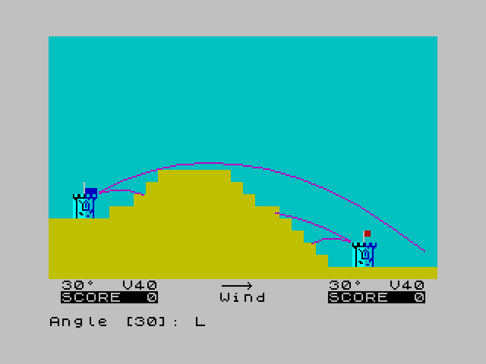 "Artillery, přestřelka pro dva hráče (ZX Spectrum)"