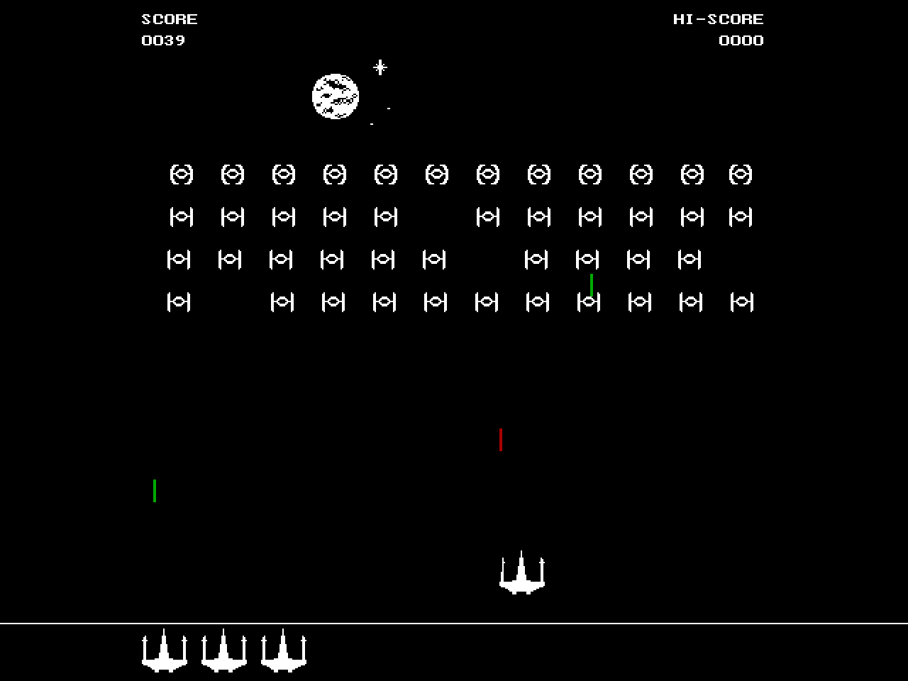 Jak vidno ze screenshotů, jde o klon klasických Space Invaders, pomazaný lepkavým čímsi s příchutí Star Wars. Ano, Impérium je tamto Impérium, raketka dole je skutečně X-Wing, a kydlit budete Tie Fightery a další neřády z kutilských dílen Lorda Helmy.