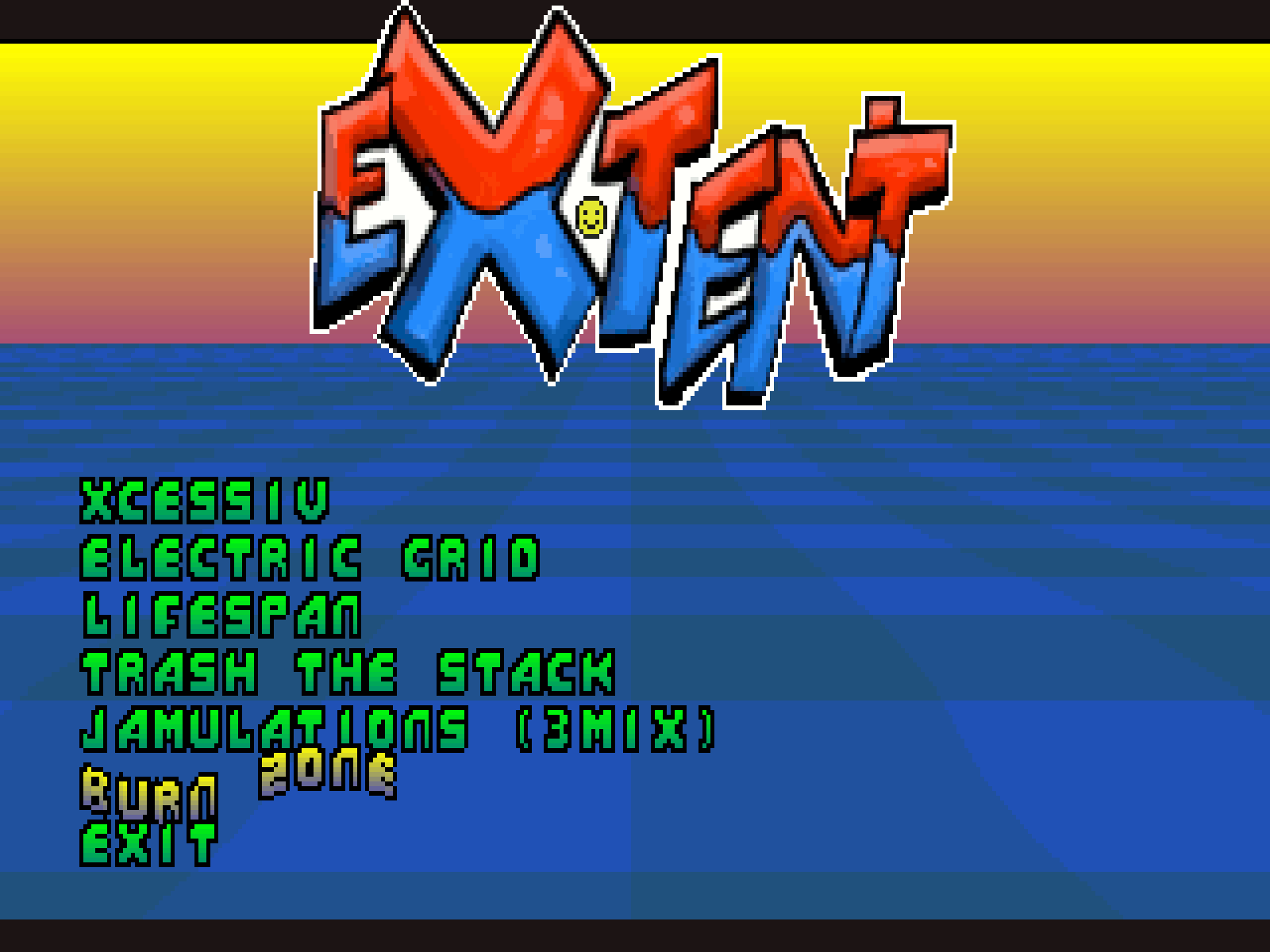 Skladby z disku EXTENT totiž dělají přesně to, co správné chiptunes mají, tedy ždímají z použitého čipu to nejlepší. Výsledkem je chutný hudební koktejl, který má jen jednu slabinu - neprovází podobně říznou hru, popř. aspoň demo :) Mým favoritem je skladba Burn Zone, chvílemi mi připomněla skvostnou muziku z ThunderForce IV pro Segu Mega Drive.