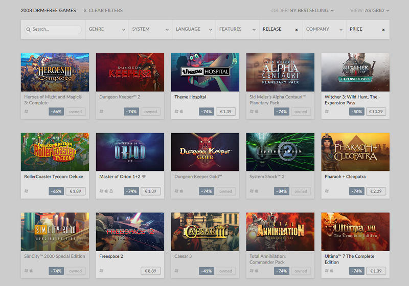 Na serveru GOG začalo období letní slev. V nadídce je samozřejmě spousta nového balastu, který nás pamětníky vůbec nezajímá. Naštěstí má portál šikovné filtry, které dovolují slevovou nabídku osekat na to skutečně důležité, tedy hry vydané do roku 2000.