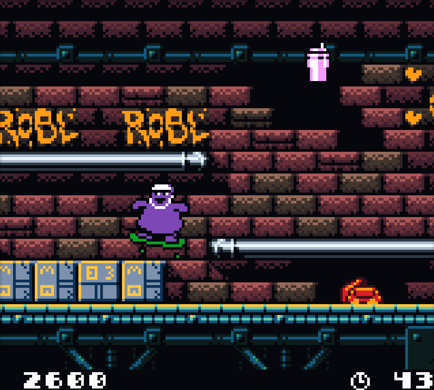 V klasické plošinovce dostanete pod křížový ovladač fialový blob jménem Grimace, který má přetěžký úkol, sesbírat dost mléčných koktejlů pro nadcházející narozeninovou oslavu. Naštěstí je Grimace cool týpek, co válí na prkně, takže nějaké takové hopkání po plošinách pro něj není problém. Jen kdyby se mu pod kolečka pořád nemotaly kartóny od hamburgerů, co se válí všude kolem. Lidi jsou prasata. Celkem musíte sesbírat 40 koktejů napříč čtyřmi levely, z nich první dva jsou na skateboardu, zbylé musíte odhopkat po svých.