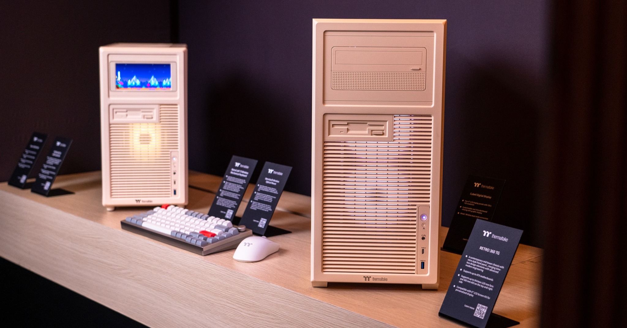 Nyní výrobce Thermaltake představil dvě podobně laděné skříně Retro 260 TG (microATX) a Retro 360 TG (klasiciký mid-tower). Ty bohužel nenabízejí 5.25 pozice žádné, Thermaltake to "retro" řeší čistě z estetického hlediska. Jinými slovy jde jen o "gimmick", pozlátko. A pozlátko až nevkusné, nebo jak jinak označit pumpu vodního chlazení, která má displej zpracovaný tak, aby připomínal CRT monitor? Nic proti retru, ale tohle je vyloženě na sílu.
