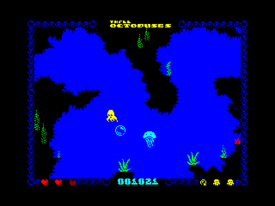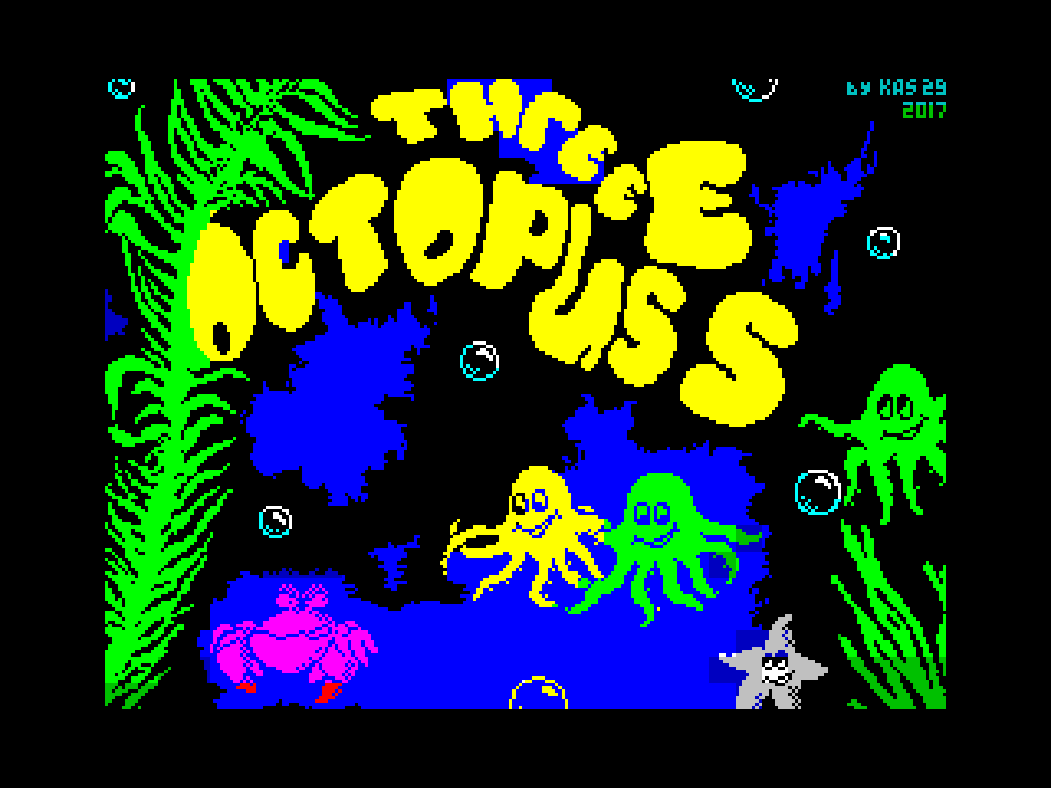 V novince Three Octopuses je vaším úkolem bezpečně dopravit trojici mrňavých chobotniček k jejich chapadlaté babičce. Problém je v tom, že chobotničky neovládáte přímo. Hra vám přisoudila roli chůvy medúzy, od které se chobotničky mohou odrážet. Vlastně jste taková mobilní trampolína. Každou z chobotniček tedy musíte prostrkat skrz několik herních obrazovek. Hra je určená pro osmibity ZX Spectrum.