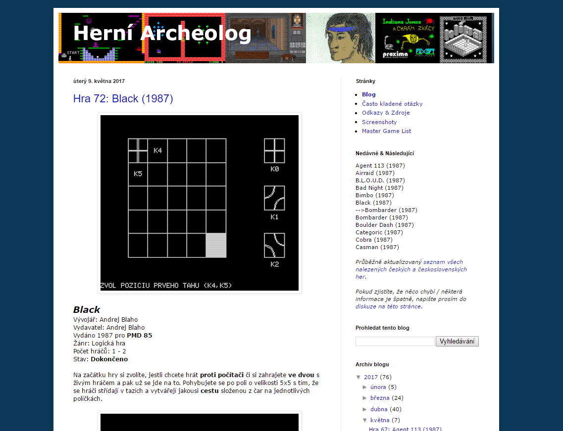 Do Retropolis se samozřejmě články z blogu Herní Archeolog sypou, ale pro jistotu ho zmíním i tady. UgraUgra, autor blogu, má v plánu kompletně zdokumentovat českou a slovenskou herní tvorbu, a to od počátku digitálního věku až po současnost. Jak autor sám uvádí, potíž je v tom, že zatímco DOSovky a mladší hry jsou zdokumentované poměrně podrobně, raná osmibitová tvorba je stále poněkud terra incognita.