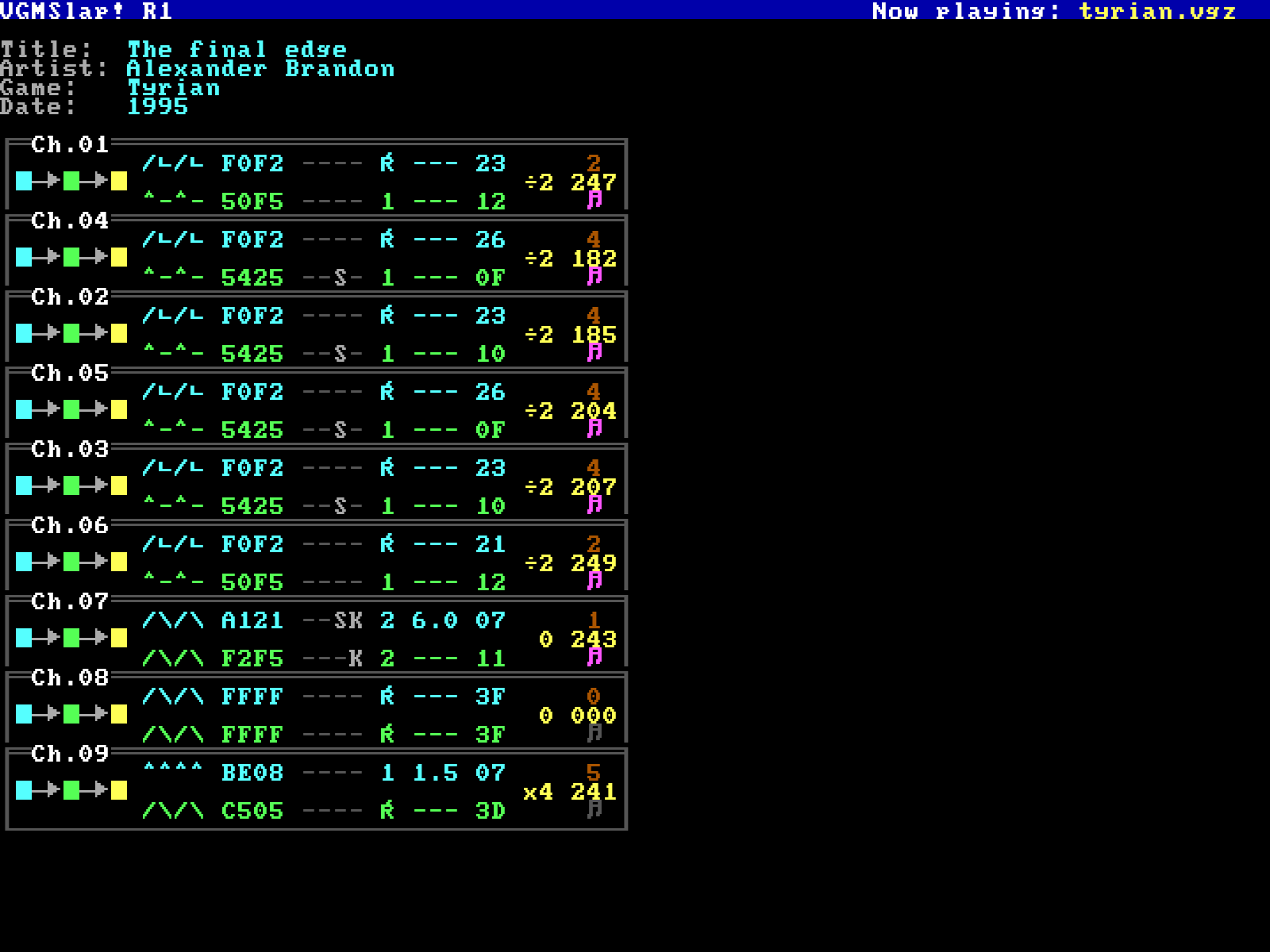 VGMSlap je nový open-source přehrávač hudby ve formátu VGM (VGZ), který vám dovolí zaposlouchat se od libozvučných fláků z vašich oblíbených starých her přímo pod operačním systémem DOS. Podporuje VGM soubory pro zvukové čipy OPL1, OPL2 a OPL3, k potěše oka nabídne esteticky hodnotné zobrazení, a zvládne i playlisty.