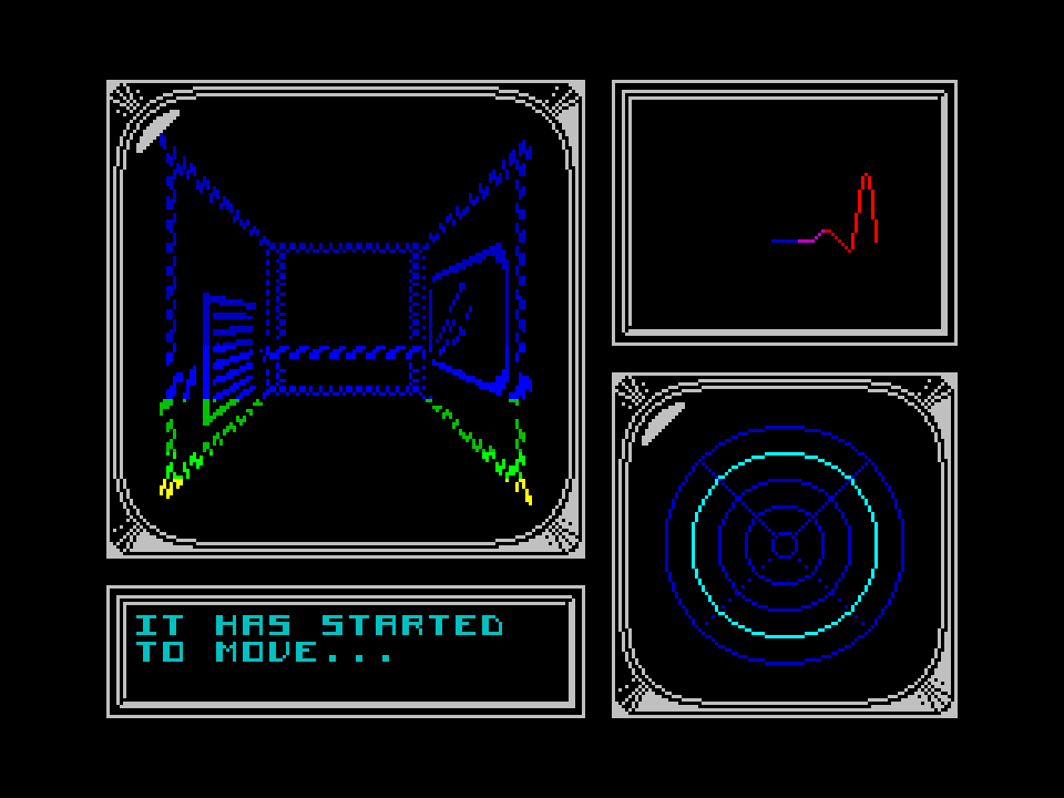A čím mě zrovna tenhle konkrétní kus zaujal, když pro ZX Spectrum toho vychází mnoho a většinou to nechávám plynout mimo? Jednoduché - minimalistickým, ale mimořádně atmosférickým zpracováním. Takhle se na to musí, není um sebrat paletu a namatlat všechny barvy na displej, musí se s tím rozvážně, zkušeně, skoro až chirurgicky, jako když dloubete z mezizubních prostor kus uvízlé klobásy.